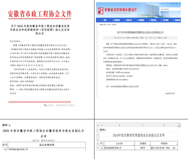 近日,城建公司憑借穩(wěn)健經(jīng)營(yíng)、優(yōu)質(zhì)履約與社會(huì)責(zé)任擔(dān)當(dāng),榮獲“年度安徽省優(yōu)秀建筑業(yè)企業(yè)”“年度安徽省優(yōu)秀市政施工企業(yè)”稱號(hào)。